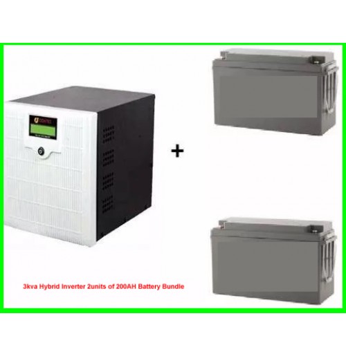 3kva Hybrid Inverter 2units of 200AH Battery Bundle- 08060498353