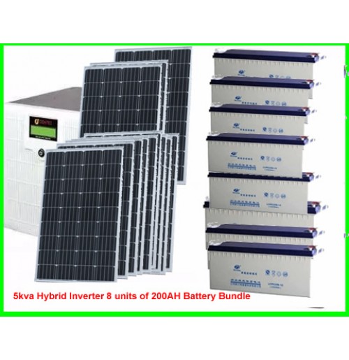 Tags: 5kva Hybrid Inverter Solar 8 units of 200AH Battery Bundle,