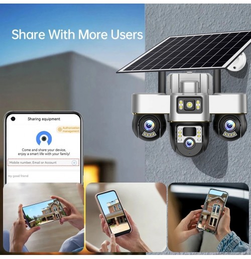 * Three-lens, three-screen PTZ solar camera.