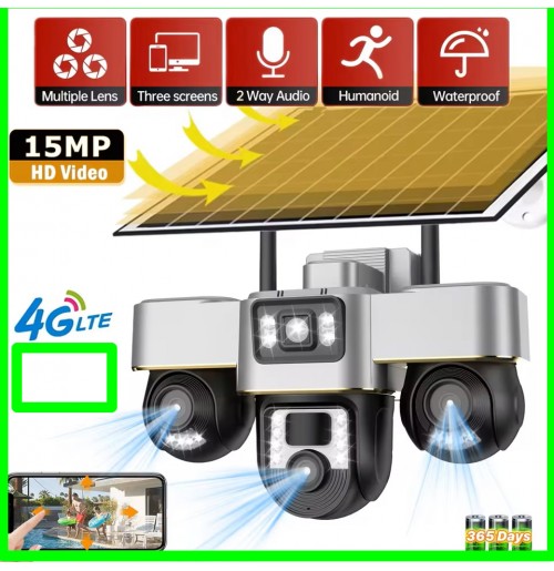 4G Solar 15mp 3 lens All PTZ Auto Tracking CCTV Camera Main Functions: