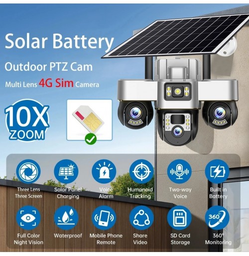 4G Solar 15mp 3 lens All PTZ Auto Tracking CCTV Camera - 08060498353